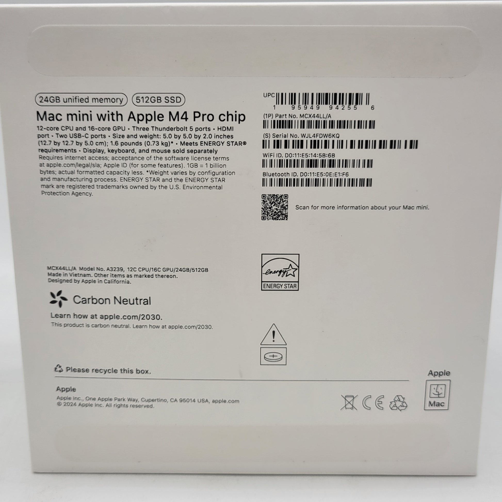 2024 Apple Mac Mini M4 Pro 4.4GHz 24GB RAM 512GB SSD Silver A3239