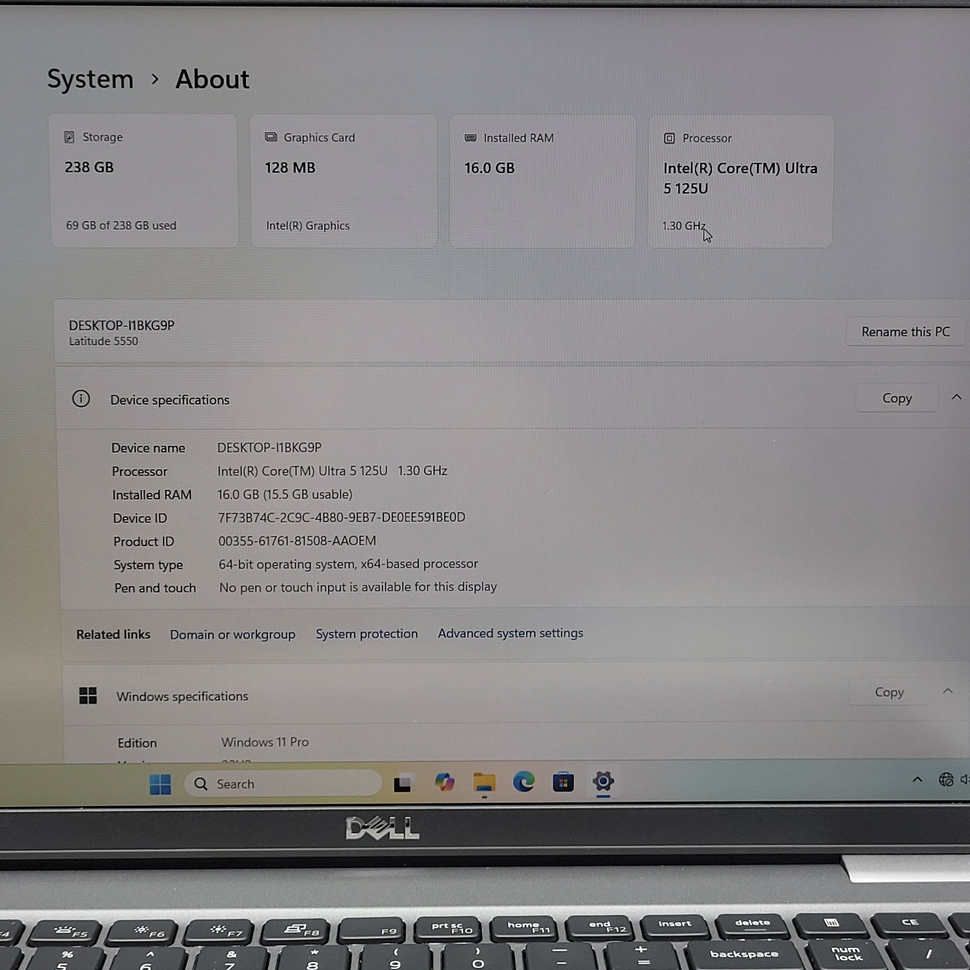Dell Latitude 5550 15.6" Core Ultra 5 125U 1.3GHz 16GB RAM 256GB SSD