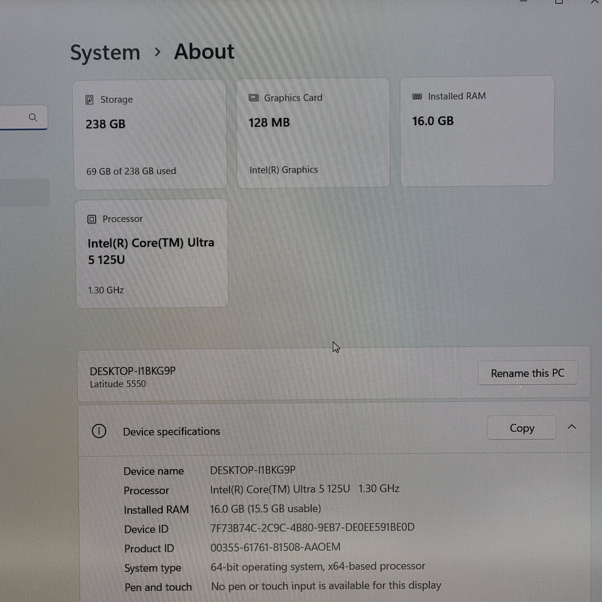 | Processor | Core Ultra 5 125U