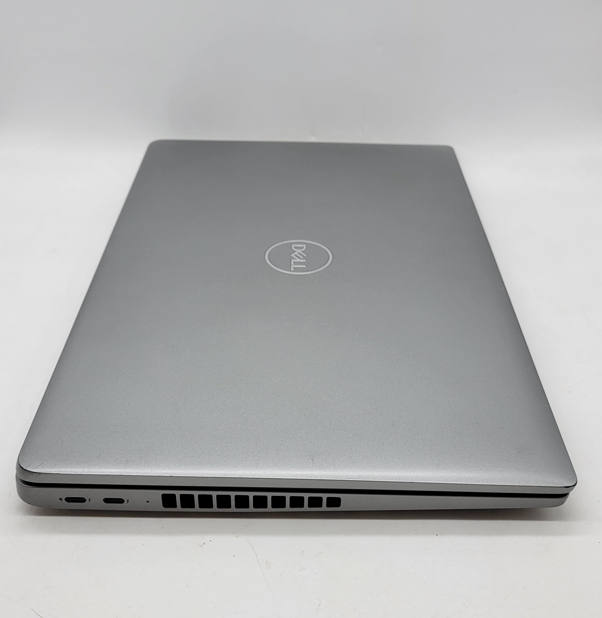 The exterior of the item shows signs of regular use. The top and bottom cases have noticeable scuffs, dents, and semi-deep scratches. However, the four sides maintain a good cosmetic condition with only minimal wear. The ports, screen, keyboard, and hinges are all in good condition, showing minor wear and signs of use but function properly. The bezel is notably well-preserved with little to no wear.