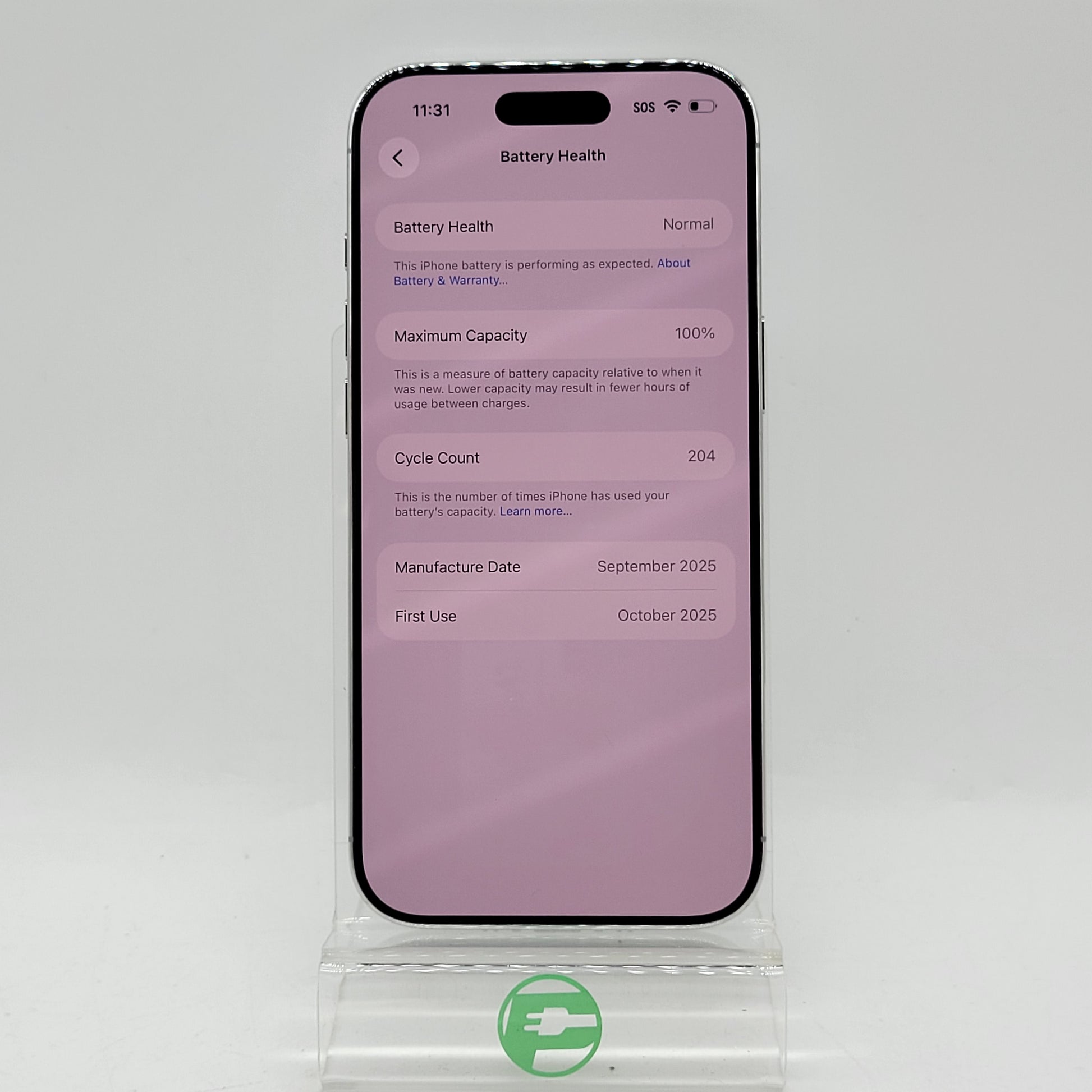 | Battery Health | 100% |