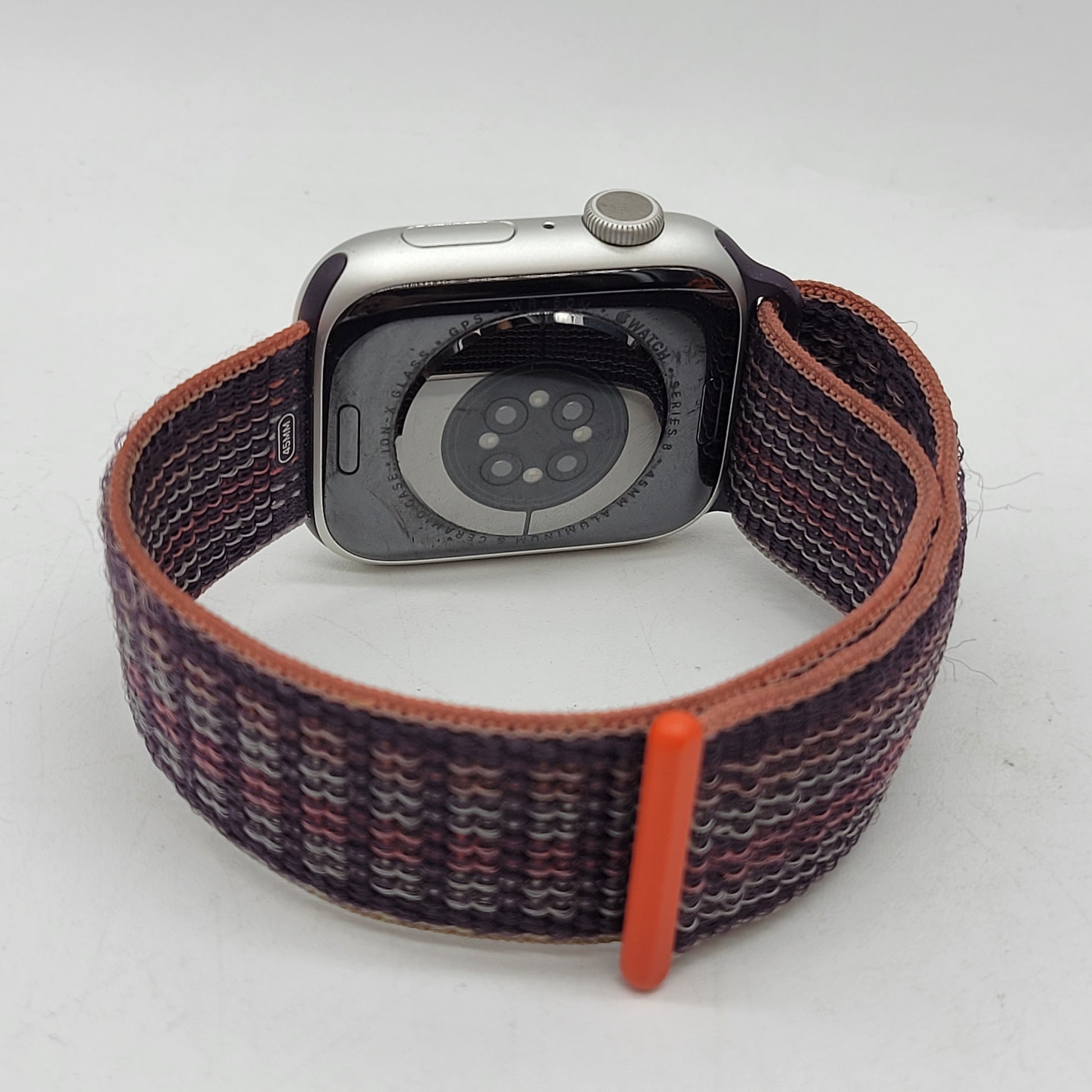 GPS Only Apple Watch Series 8 45MM Silver Aluminum Beige Braided Loop A2771