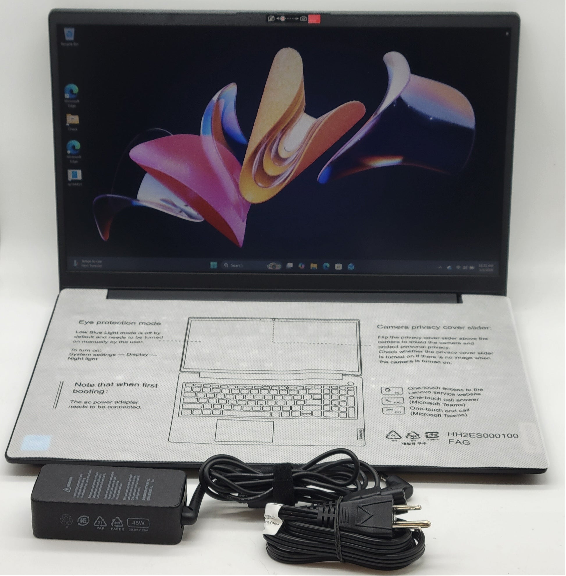 This product is in overall good cosmetic condition, showing only minimal wear on the top, bottom, all four sides, and the bezel. The ports are clean and well-maintained. The screen and keyboard exhibit minor wear and scuffs, typical of light use. The hinges are sturdy and function properly, ensuring smooth operation. Please refer to the close-up photos provided for a detailed view of the actual item for sale.