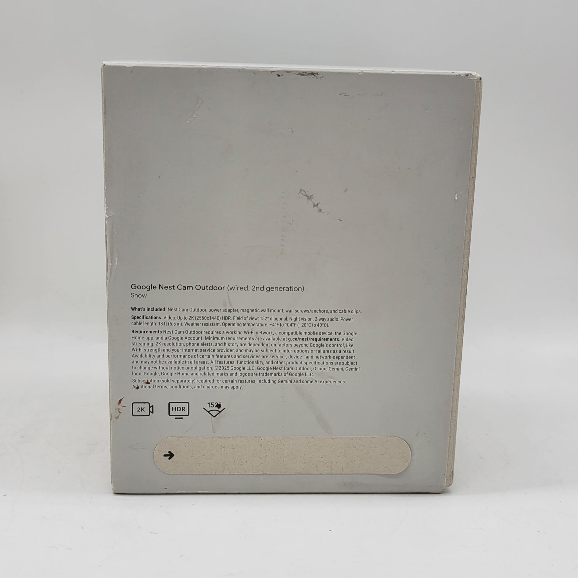 New Google Nest (2nd Generation) Snow Wired Cam Outdoor 2K G7LYP