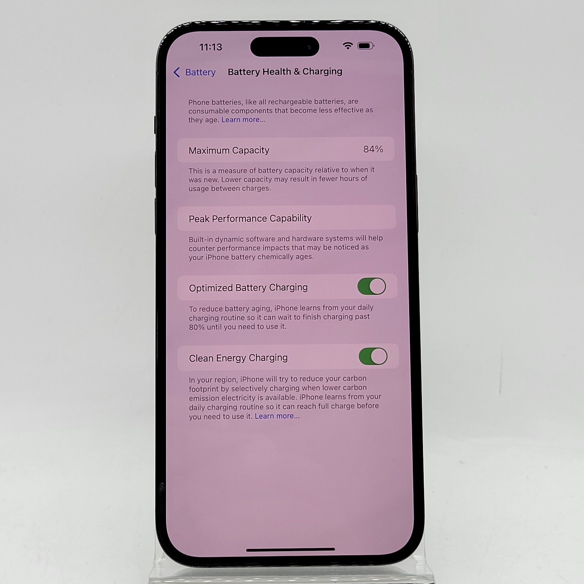 | Battery Health | 84% |